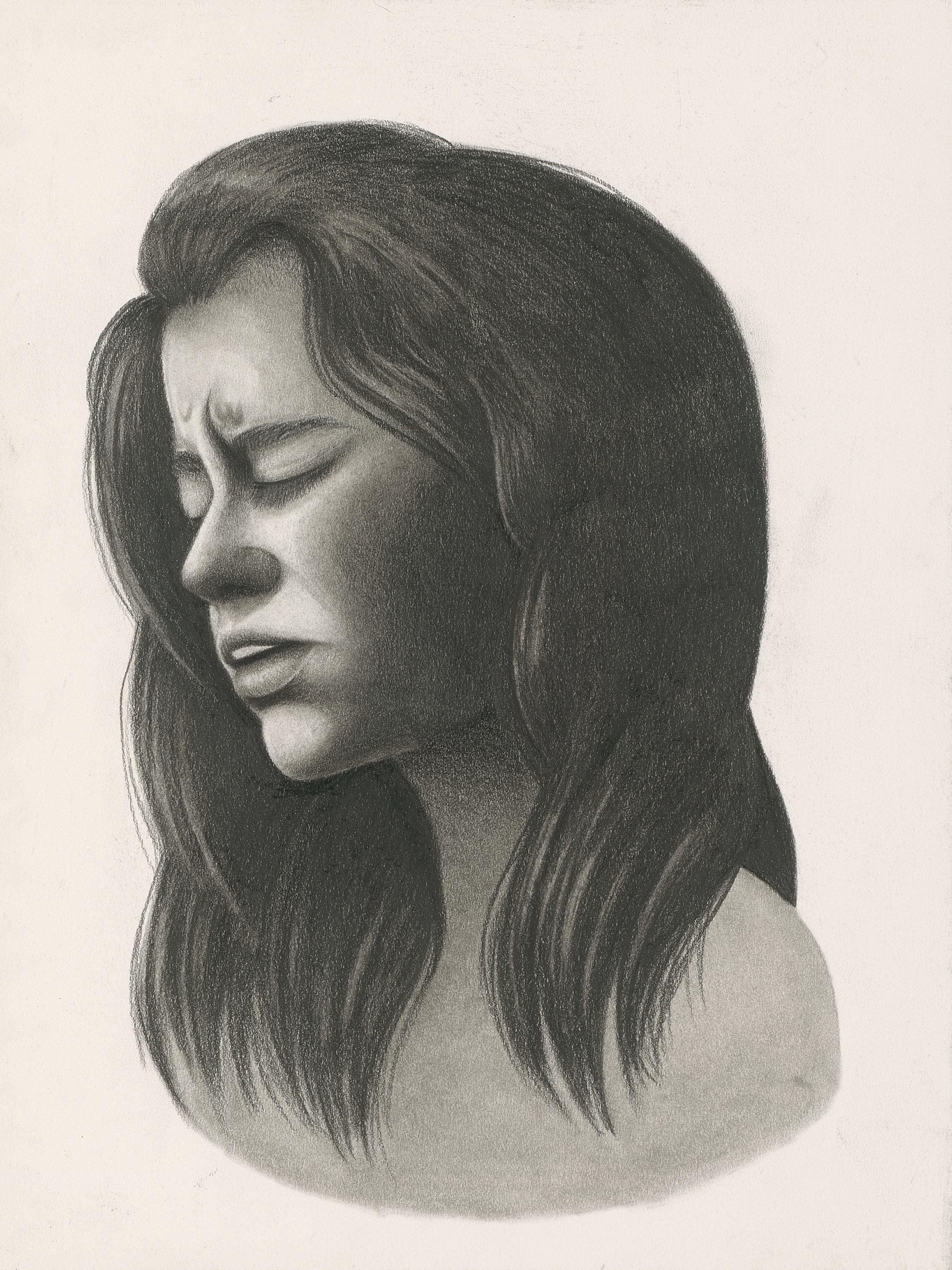 “Quiet Ache” is a 9 x 12 inch graphite portrait that captures a deeply human expression—eyes closed, brows tightened, lips slightly parted in a moment of vulnerability. This realistic pencil drawing explores emotion through light, shadow, and careful tonal layering, allowing the viewer to feel what cannot be spoken.